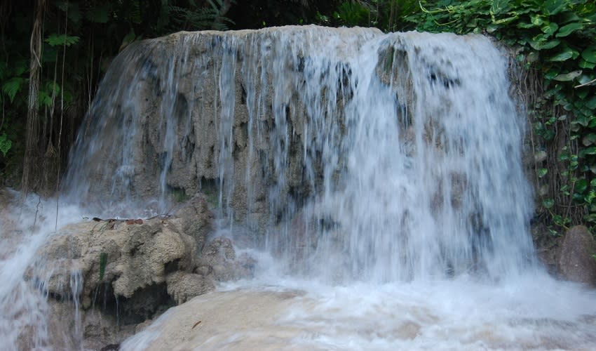 The Turtle River Falls and Gardens is a 15-acre tropical garden conveniently located in the resort town of Ocho Rios and features: 14 cascading waterfalls on the Turtle River which flows through the property Varieties of indigenous and endangered plants Exotic birds in a 382,329 cubic feet sized Walk-In-Aviary A beautiful Japanese Koi Pond A tropic.. Situated in a natural river gorge with 20 acres of lush vegetation and 14 natural cascading waterfalls with meandering streams and a natural spring fed pool is the Turtle River Falls and Gardens (formerly the Enchanted Gardens)